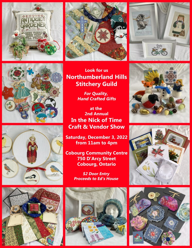Northumberland Hills Stitchery Guild will be participating in the “In the Nick of Time Craft & Vendor Show” at Cobourg Community Centre in Cobourg. Sat Dec 3 from 11-4. $2 at the door.