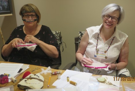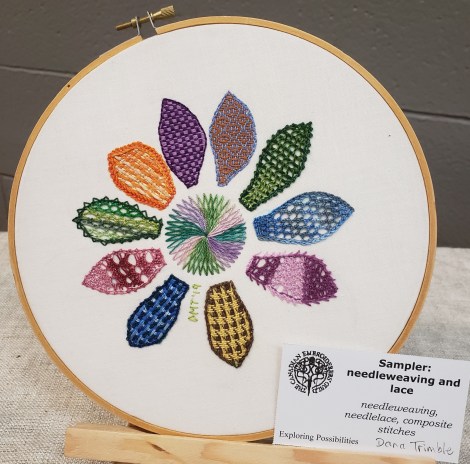 As well as our classes (Sue Ronchka’s “I Wish I Had a BIG Hat”, Alison Jackson’s “Hardanger: Basics and Beyond”, Bridget O’Brien’s wool applique course “The Circle Game”, Judy Eckhardt’s “Motifs and Slips” and “Glazig Embroidery” with Janet Sunderani) we had some time in the afternoon programs to explore.