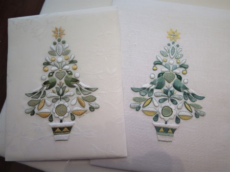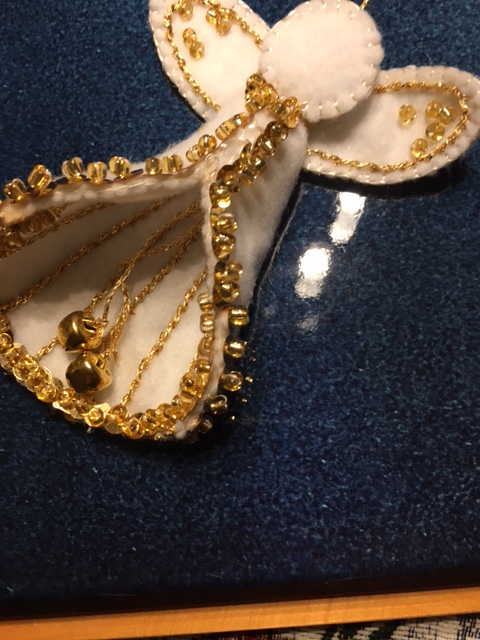 At the end of November, we had our one-morning Christmas Workshop with a choice of several different ornaments or Christmas items to stitch. I chose the velveteen wine bag with the goldwork Christmas tree. Thanks to the Guild members who volunteered to teach these mini-classes.