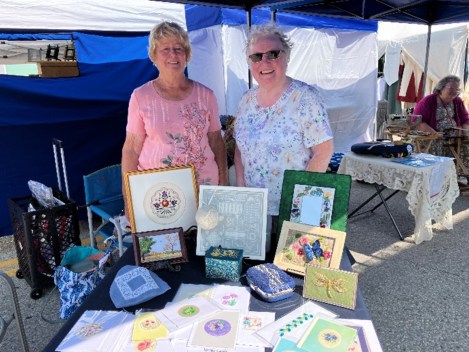 In July, Ruth Douglas and friends were showing embroidery at the Renaissance Faire in Fergus. A display is also planned for the Guelph Library – main branch – in August and at the Aberfoyle Fall Fair in September.