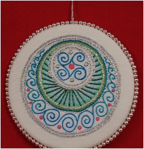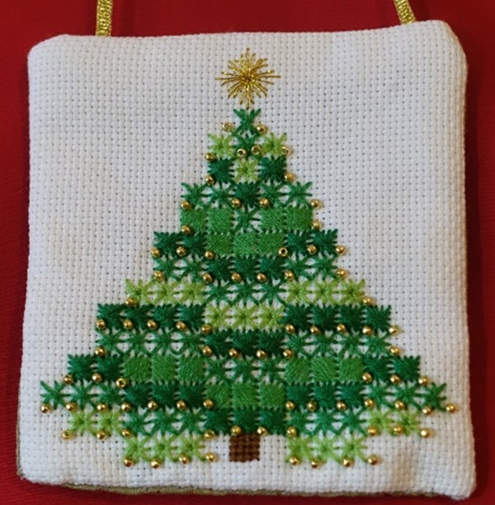 We started the year with a bear ornament covered in Lazy Daisies and French Knots, taught by our President, Maria Smit. It was wonderful to see all the colourful variations created by our members. Some of these bears ended up in our Christmas ornament exchange, which was a real treat.