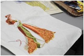 This year, we are all about back to basics, covering stumpwork, candlewicking, surface embroidery using variegated yarn, and a unique course about using Crayola crayons to create a beautiful organic background for abstract embroidery projects. We’ve revived our popular Learn-A-Stitch as well, where members show off their favorite stich and teach it to the group, and we’ve got two seminars planned this year: design, colour and embellishment, and modern technology in embroidery.