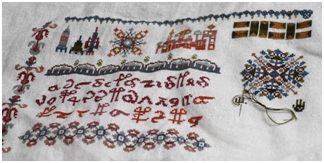 Maria submitted several intricate cross stitch works.