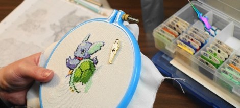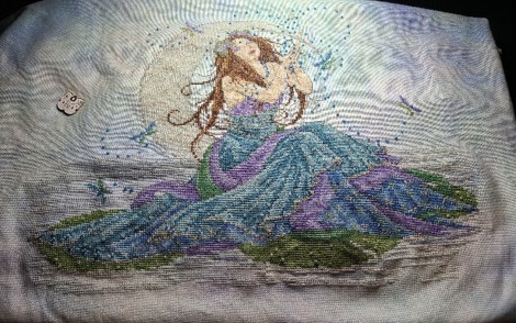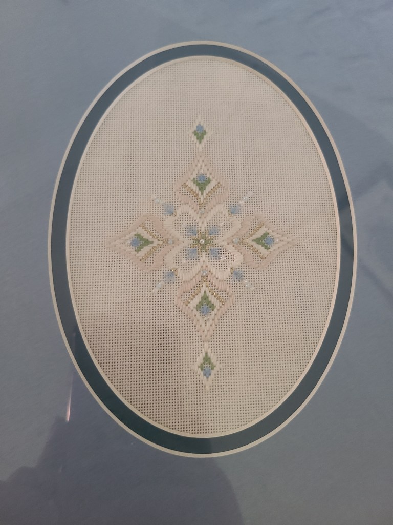 Lea’s intricate cross stitch is just one example of her many night-time stitching projects.
