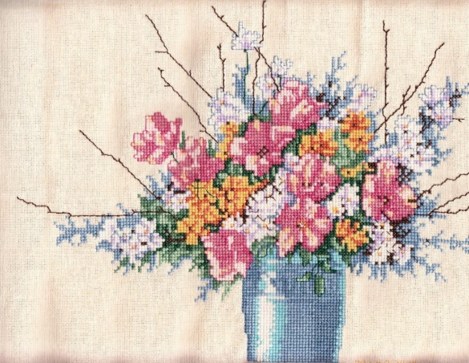 Cathy chose to meet the spring challenge with a kit from the Stitchery.
