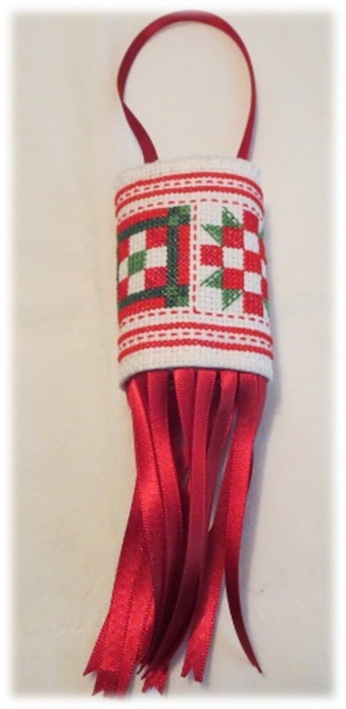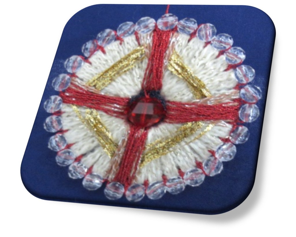 This fall our CEG-Kitchener-Waterloo started of with a little “back to basics” project – a napkin ring in Assisi Embroidery, a cross stitch variation where the background is stitched and the motif itself is left unstitched. The ring was finished with nun-stitch, a nice finish for a small piece where a hem might be cumbersome.