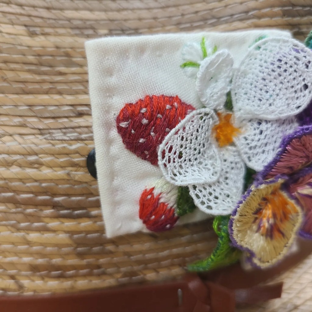Then last week I came across Marion’s World. She’s from the UK and the best of all, she’s a left handed stitcher!!! What caught my eye was the title of the video Craft Your Own Embroidery Pocket. She stitches a floral design on a piece of linen and then makes it into a pocket.