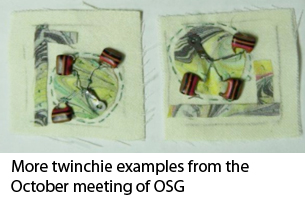 For our October meeting we worked on a series of ‘Twinchies’ – a fun project – to get us thinking quickly.