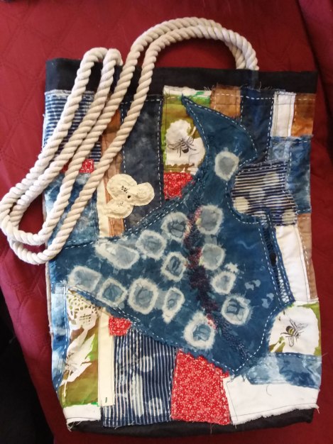 their indigo dyed sweaters for this, but attached you see Mary’s bag made