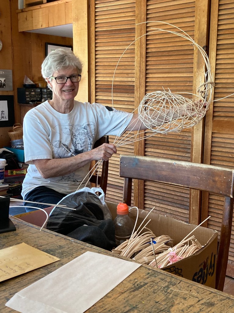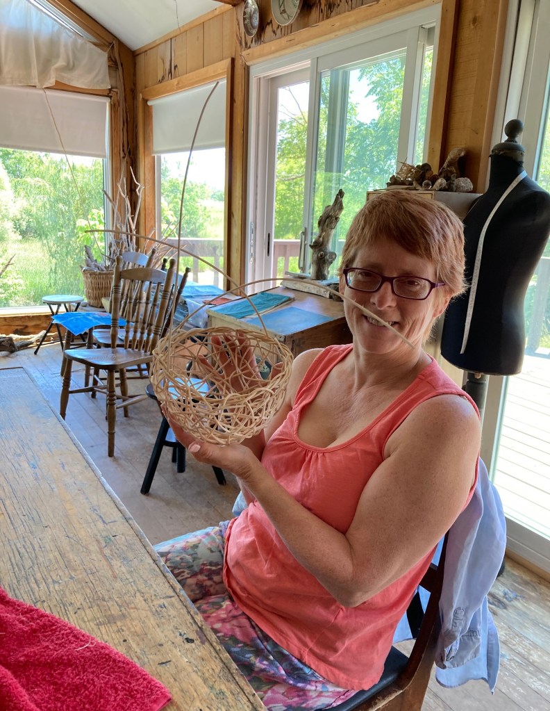 This Summer at the Oakville Stitchery guild we stepped out of the box from our usual workshops such as tea and rust dyeing, making buttons and dolls. We had a mini workshop of heating wax crayons on fabric as well doing Boro with thread and fabric scraps. Our main workshop was working with twine to make a basket.