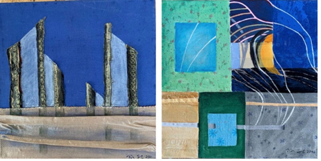 Also in the Artus exhibition, is the following fibre art works by our Guild members are on show: 3 Works by Anne MacMillan, who sadly passed away on July 11th, making her work especially poignant at this time.