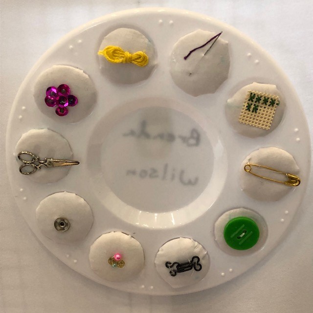 May’s challenge was to send images of ‘My Favourite Things for stitching’. Everything from scissors, needle threaders, lamps, magnifiers, chocolate, and more were shown.