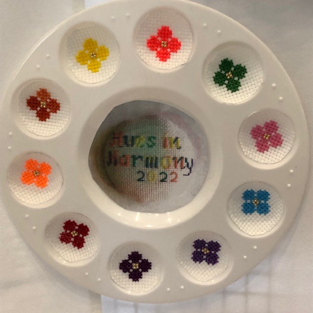 February Stitch Day and Stash Sale: members stitched, chatted, enjoyed snacks and plundered the treasure trove of items available to take home and add to our “to be worked on” lists. There was a display of completed previous stash sale purchases. Congratulations to Diane Scott on her submission: Winner of the Viewer’s Choice Award!