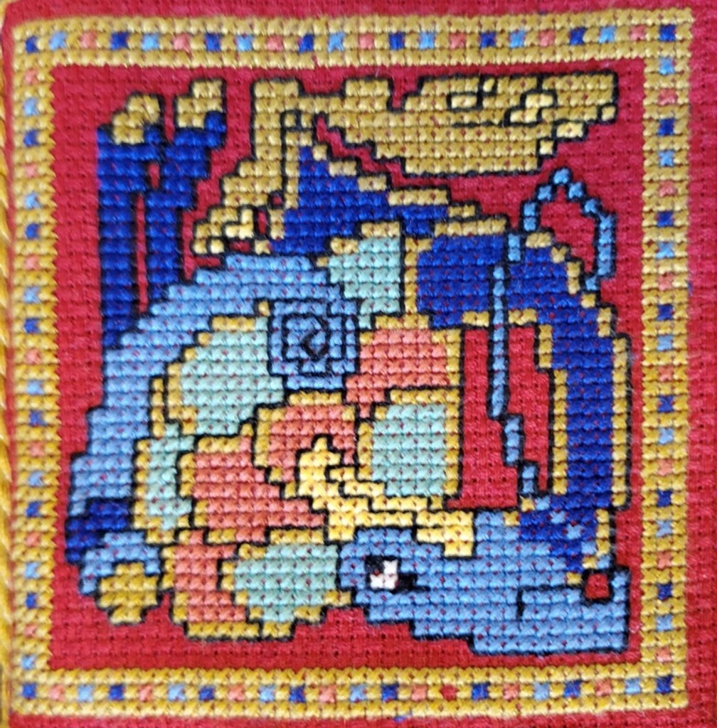 Cathy finished Alison Cole’s design of the Welsh Dragon!