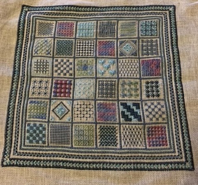 Unusually, we continued our twice monthly meetings throughout the summer adopting a FIFI format – we would do “show and share” and then general chit chat about the world, our feelings, freebies from the stitching world, best tv shows for yoga, exercise, humour etc. After these meetings a short email was sent covering some of the chat and adding the links recommended (not just for stitching 😉