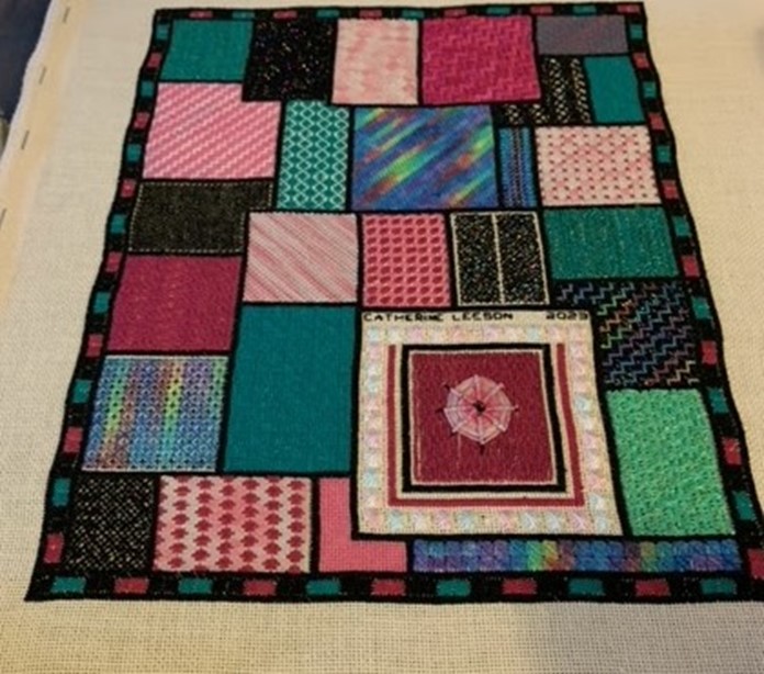 Helen O’Malley also sent us this photo of Ann Condie’s finished piece of last year’s canvas challenge from Toronto Guild of Stitchery: